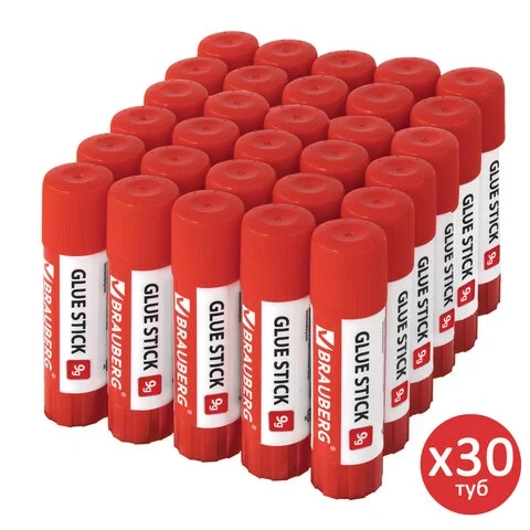 Клей-карандаш 9 г ВЫГОДНАЯ УПАКОВКА КОМПЛЕКТ 30 штук, BRAUBERG, 270484