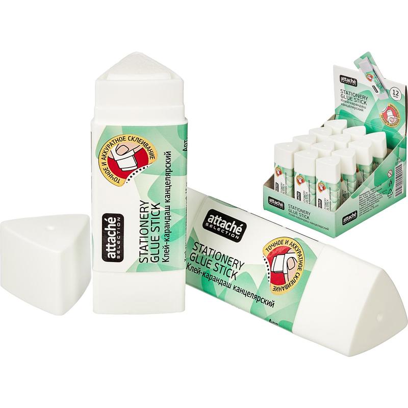 Клей-карандаш Attache Selection треугольной формы предназначен для склеивания бумаги, картона, фотобумаги и текстиля к бумаге. Вес — 8г. Треугольная форма корпуса эргономична, удобно лежит в руке и позволяет более точно наносить клей. Не содержит цветовых пигментов (бесцветный). Легко очищается с одежды, рук, не вызывает аллергии. В составе клея-карандаша есть глицерин. Клей расходуется экономично, склеивает в течение 1 минуты.