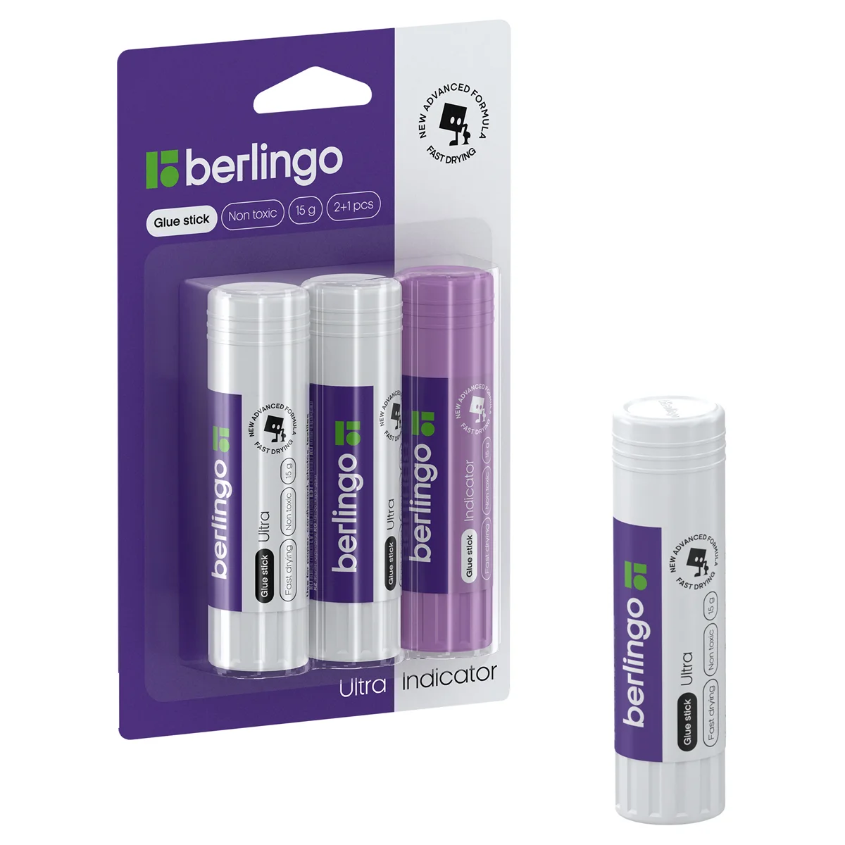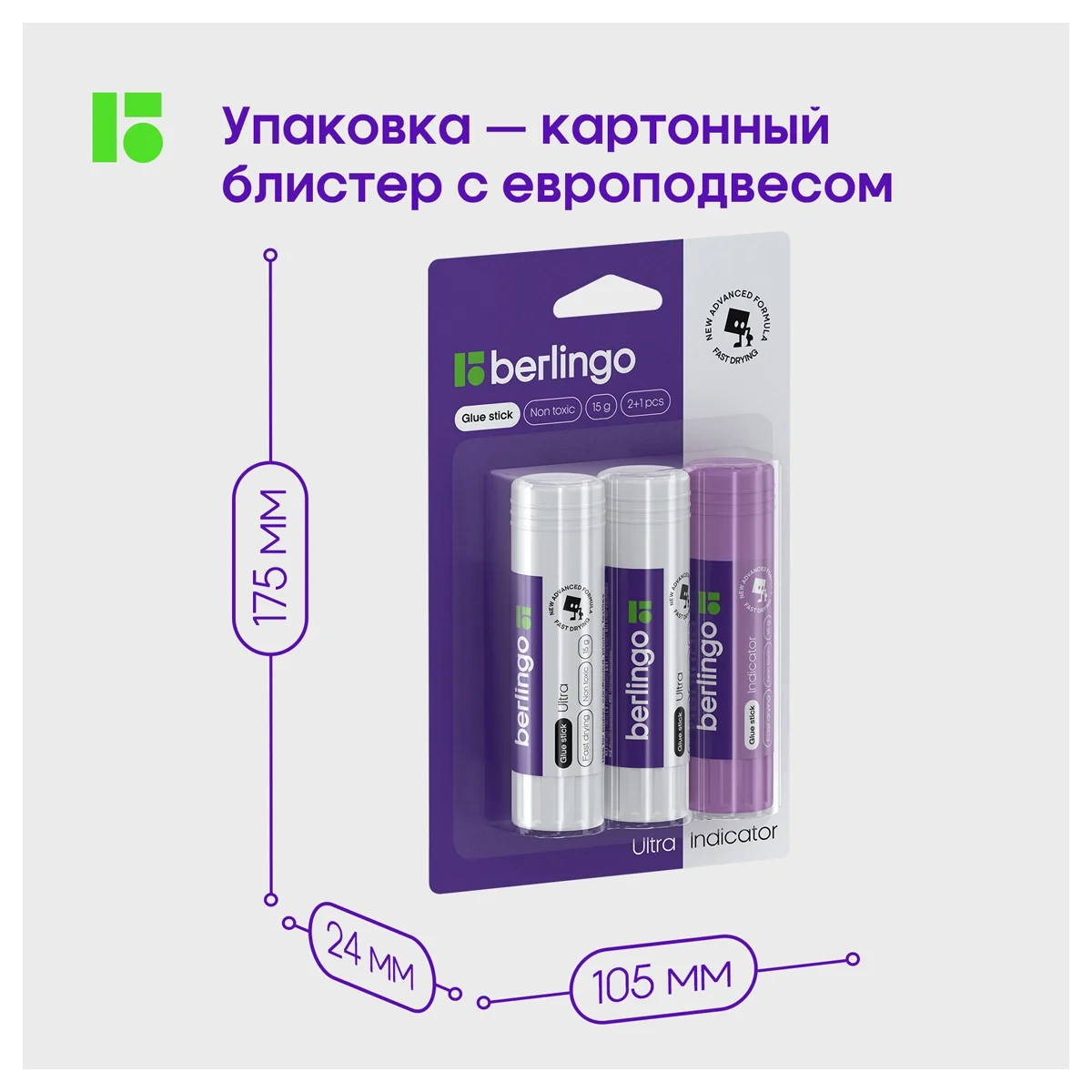 Клей-карандаш Berlingo 'Ultra'/'Indicator', 15г, 3шт., блистер, европодвес, ПВП