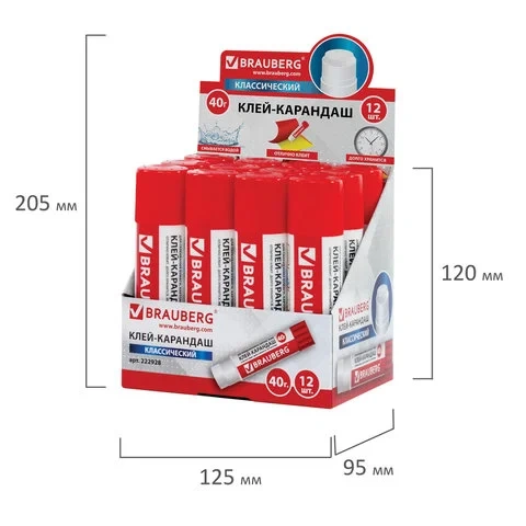Клей-карандаш Brauberg 40г, без запаха