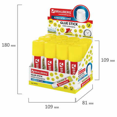 Имеет объем 15 г. Прекрасно ложится, легко и надежно склеивает различные материалы. Удобен в использовании, не пачкает пальцы. Это идеальный помощник для работы и творчества. Клей-карандаш используется как замена канцелярскому клею. После нанесения высыхает без образования пятен. Безопасен для здоровья. Увеличенный срок годности - 5 лет. Оригинальный дизайн со смайлами для Вашего прекрасного настроения!