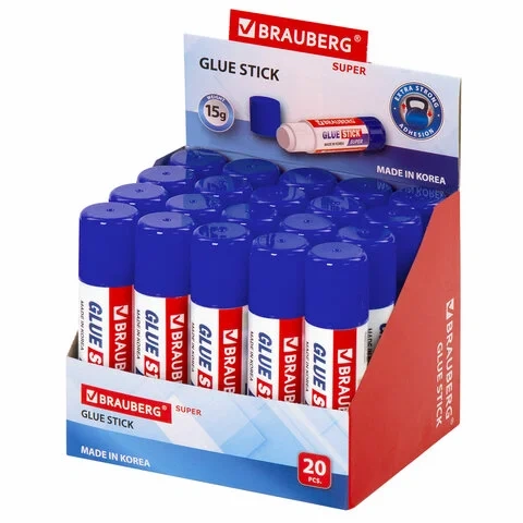 Клей-карандаш BRAUBERG SUPER, 15 г, ЮЖНАЯ КОРЕЯ, 229541