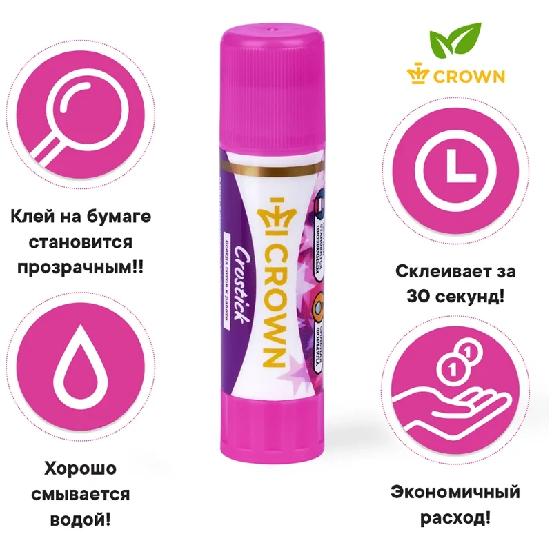 Клей-карандаш Crown 'Indicator' - не имеет запаха, абсолютно безопасный, нетоксичный и легко отстирывается в холодной воде. Клей-карандаш Crown 'Indicator' - отличное решение для детского творчества!