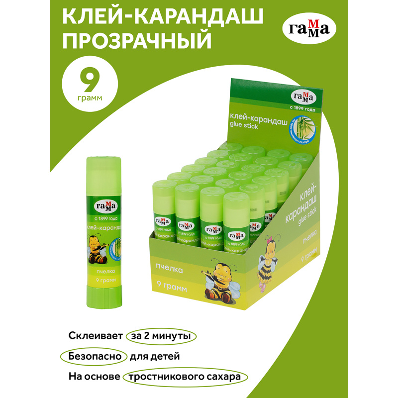 Клей-карандаш Гамма 'Пчелка', 9г, прозрачный, ПВП
