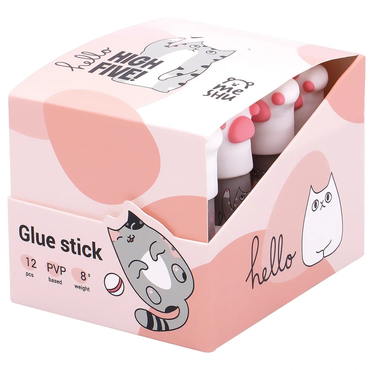 Клей-карандаш MeShu с топпером 'Paw' ассорти, 8г., дисплей бокс, ПВП