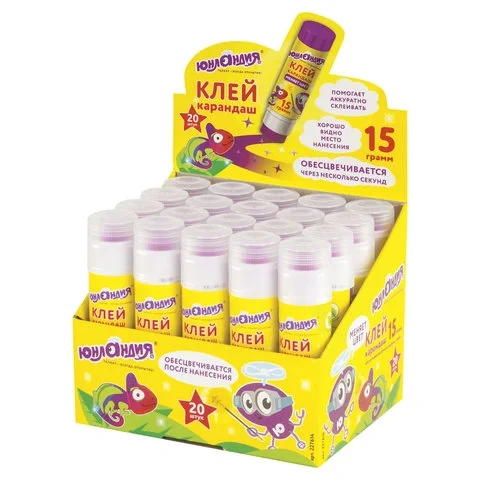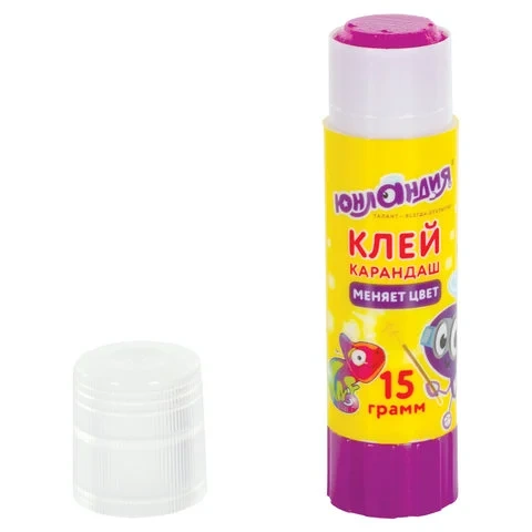 Клей-карандаш цветной ЮНЛАНДИЯ 'ЮНЛАНДИК И ХАМЕЛЕОН', 15 г, обесцвечивающийся после высыхания, 22761