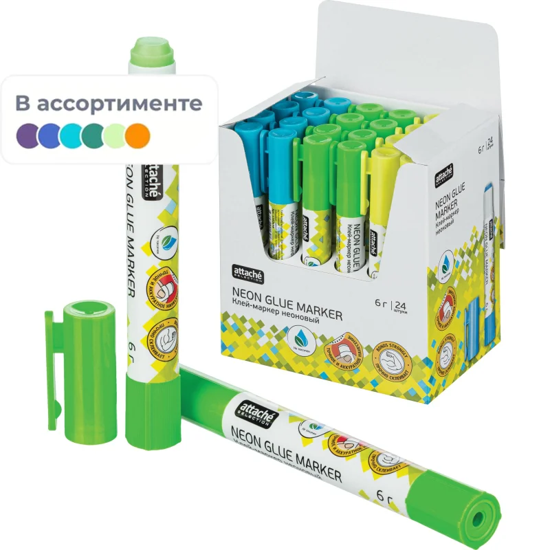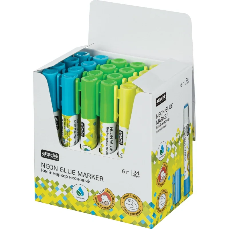 Клей-маркер Attache Selection 6г в форме ручки неоновые цвета