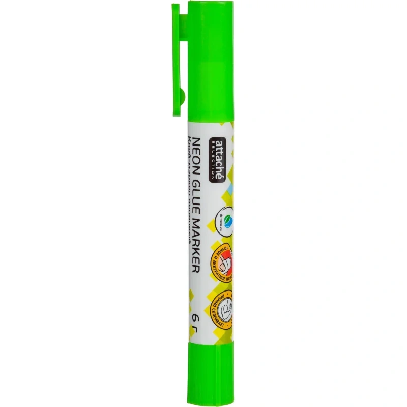 Клей-маркер Attache Selection предназначен для склеивания бумаги, картона, декоративных и поделочных работ. Основа клея обладает мягкой структурой и содержит глицерин для легкого скольжения. Вес — 6 г. Прочное склеивание. Легко смывается водой и отстирывается, не имеет запаха. Простой и удобный механизм, расположенный в основании стержня, позволяет легко выкрутить и закрутить столбик клея. Не токсичен. Клей морозостойкий. Выдерживает 2 цикла заморозки/разморозки при температуре до ?18 °С. Показатель прочности (растяжения): 200-300 psi (фунт-сила на квадратный дюйм).