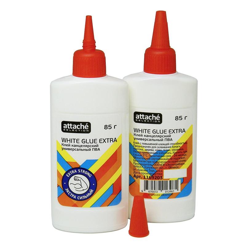 Клей ПВА Attache Selection Extra предназначен для склеивания бумаги, картона, дерева, ткани, кожи, фотобумаги, керамики. Отлично подходит для хобби и творчества для взрослых и детей. Пластиковый дозатор обеспечивает точное нанесение и экономный расход. Имеется съемный колпачок, который предохраняет клей от засыхания.