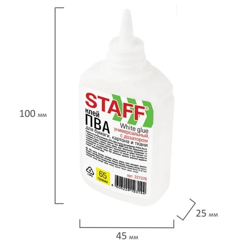 Клей ПВА с дозатором, 65 г, STAFF, 227376