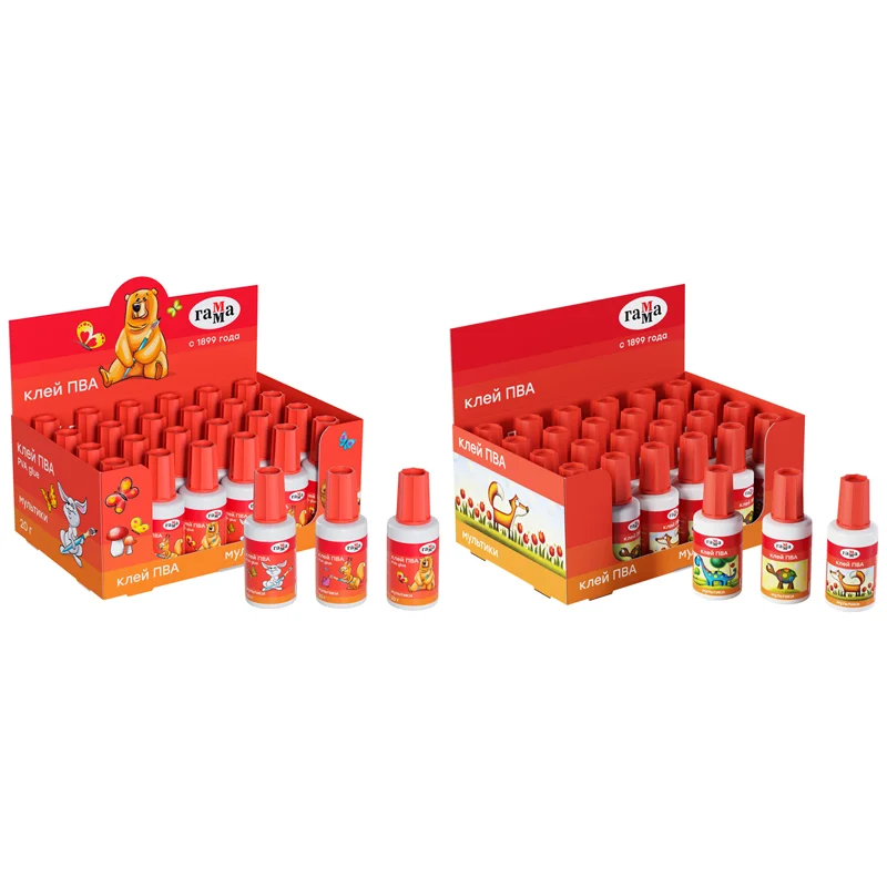 Клей ПВА с кисточкой Гамма 'Мультики', 20г