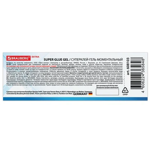 Несмотря на небольшой объем, клей-гель экономно расходуется благодаря более густой консистенции. Обладает быстрым схватыванием – всего 10 секунд! Склеивает прочно и надежно. Не растекается, не капает, не оставляет видимых следов после высыхания. Водостойкий, термостойкий, устойчив к органическим растворителям. Heпригоден для склеивания посуды, контактирующей с пищей.