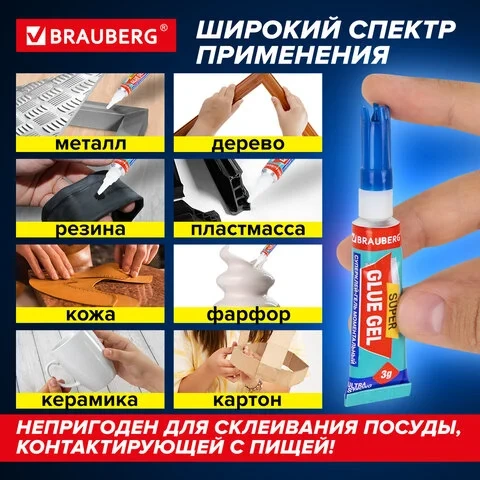 Клей специальный Brauberg Extra гель моментальный, ультрапрочный суперклей, 3г