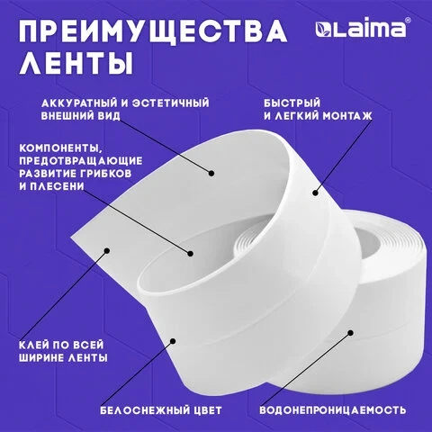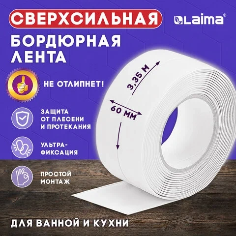 Отзывы о «Клейкая лента бордюрная для ванны и кухни 60 мм х 3,35 м, белая, акриловая основа, LAIMA, 608773»