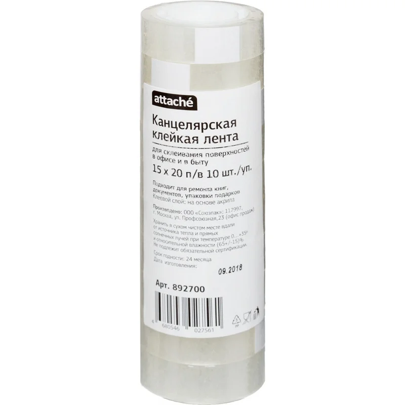 Канцелярская клейкая лента Attache разработана специально для канцелярских нужд.