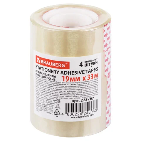 Клейкая лента канцелярская Attache Selection 19х10 кристальная 4 шт./уп.