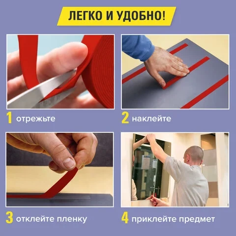 Идеально подходит для крепления градусников и информационных панелей на окнах и дверях, фиксации зеркал и аксессуаров в ванных комнатах, молдингов, дефлекторов и т.д. Стойкая к воздействию погодных условий: температуры, влаги, УФ, химических веществ. Заменяет механический крепеж. После использования удаляется без следа. Длина - 5 м, ширина - 19 мм, толщина - 1000 мкм, цвет - прозрачный. Упаковка - полибэг с европодвесом.