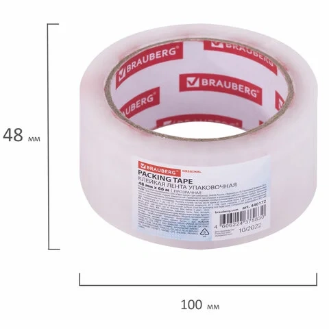 Клейкая лента упаковочная 48 мм х 66 м, прозрачная, толщина 45 микрон, BRAUBERG ORIGINAL, 440172