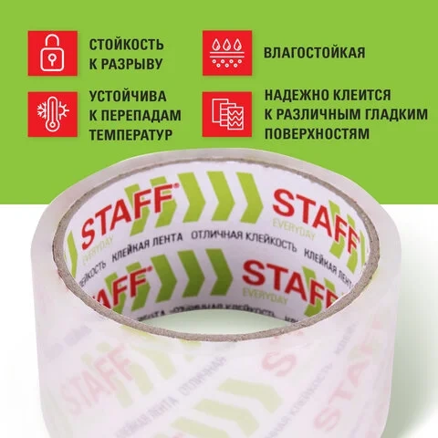 Клейкая лента упаковочная 48 мм x 40 м, прозрачная, толщина 40 микрон, STAFF CLASSIC, 440176
