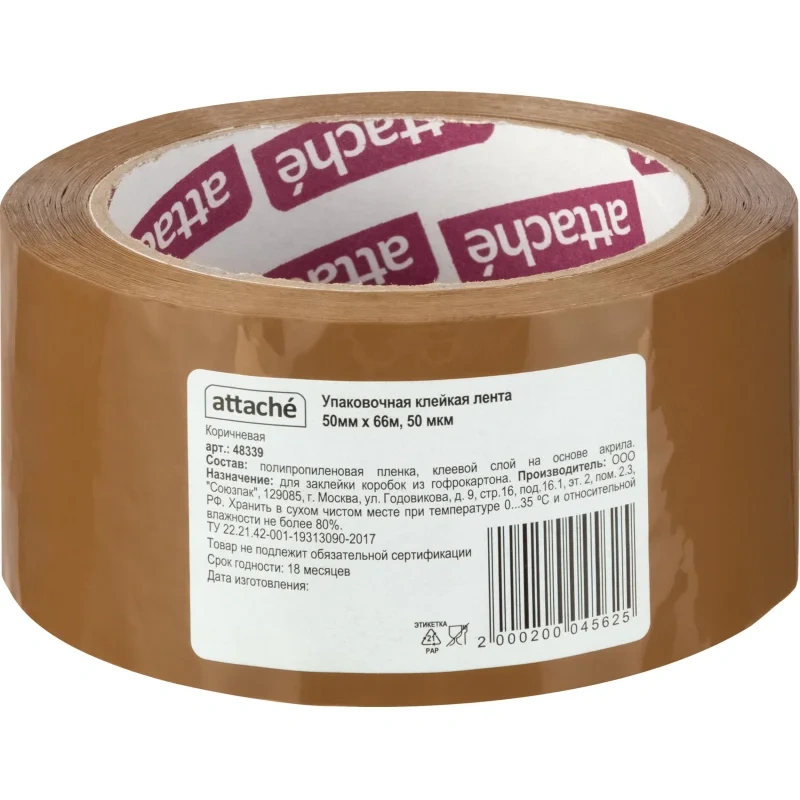 Упаковочная клейкая лента толщиной 50 мкм изготовлена на основе прозрачного полипропилена. Отличается высокой адгезией клея (слипанием с поверхностью), стойкостью к разрыву. Ширина ленты — 50 мм, длина рулона — 66 м. Широкая клейкая лента предназначена для упаковки объемных и тяжеловесных грузов, не теряет свойств на открытом воздухе при температуре от 10 до 30°C. Не хранить под прямыми солнечными лучами.