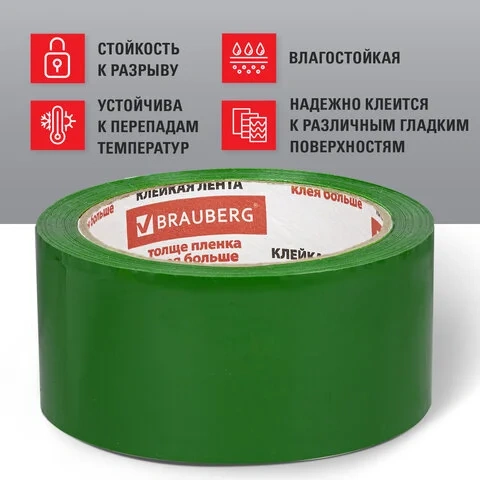 Клейкая лента упаковочная Brauberg 48мм х66м, зеленая