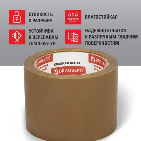 Клейкая лента упаковочная Brauberg 72ммх66м, коричневая, 45мкм