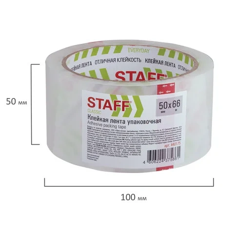 Клейкая лента упаковочная Staff Classic 50мм x 66м, прозрачная, 40мкм