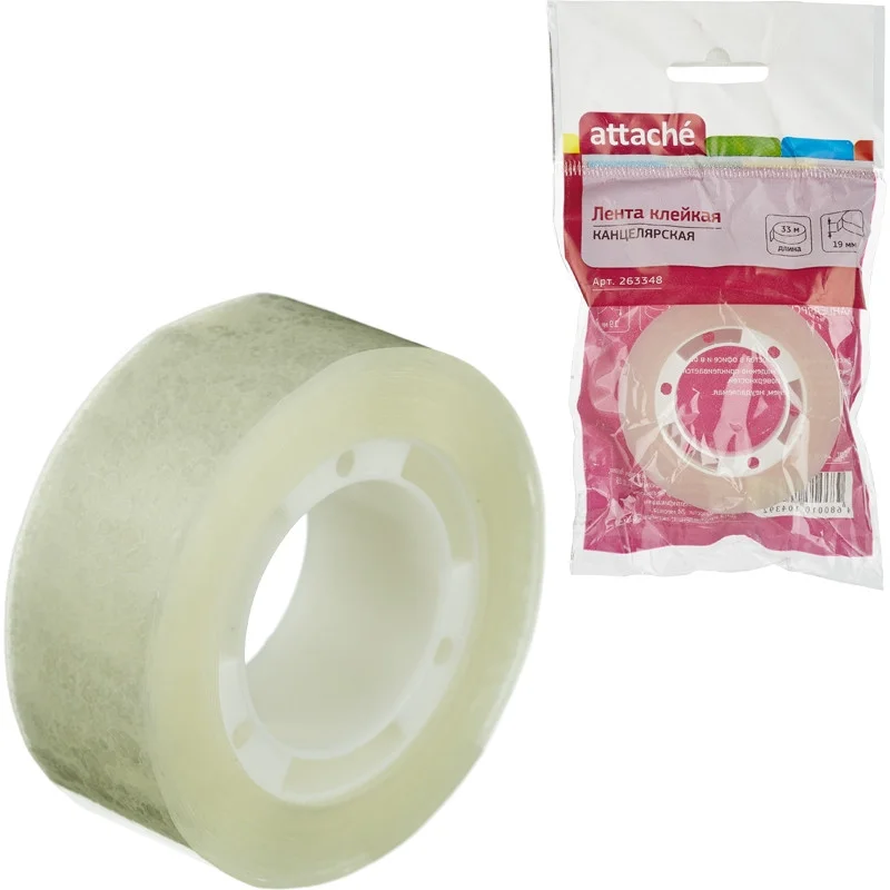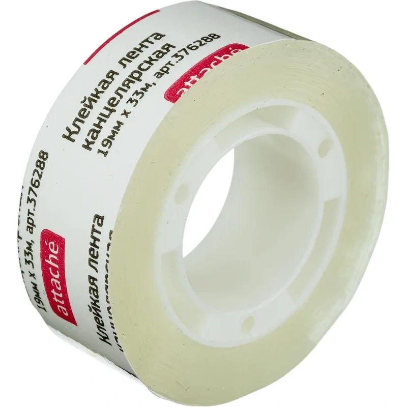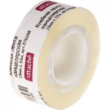 Канцелярская клейкая лента Attache 19мм х33м, прозрачная, на пластиковой втулке