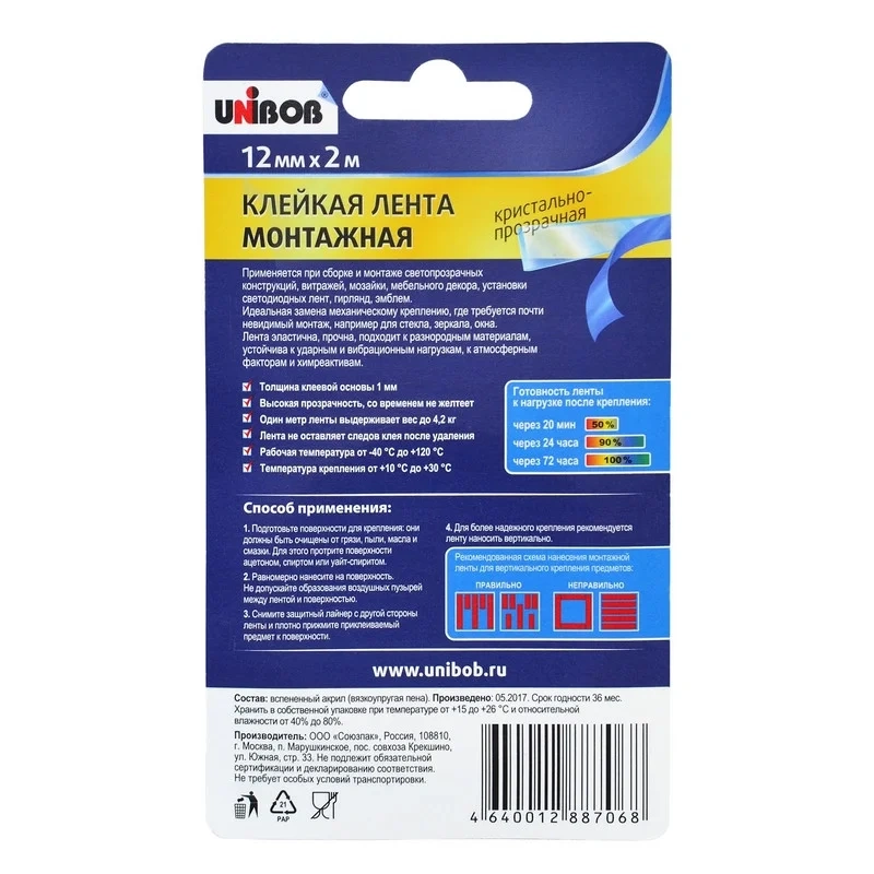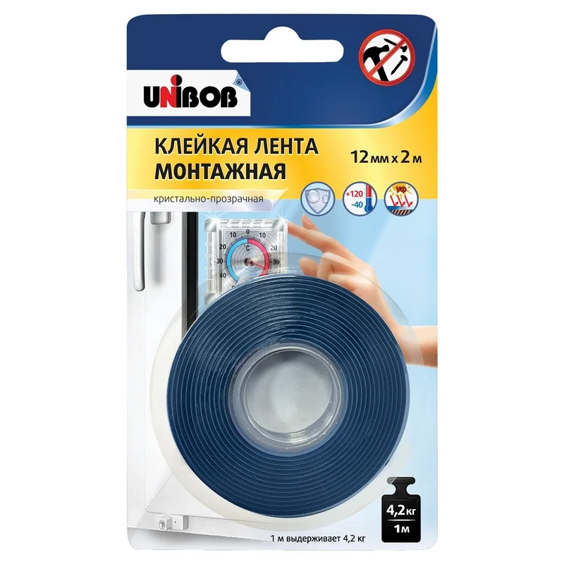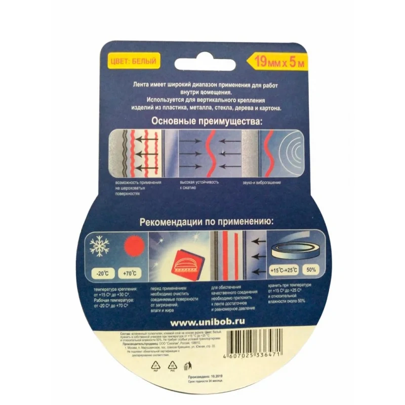 Клейкая лента двухсторонняя 19мм х 5м для внутренних работ Unibob