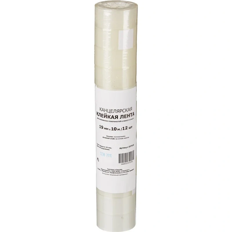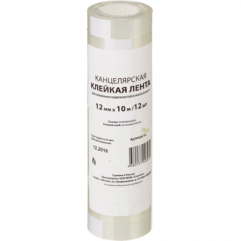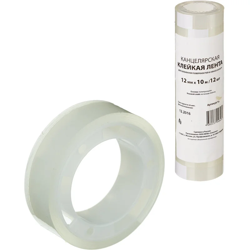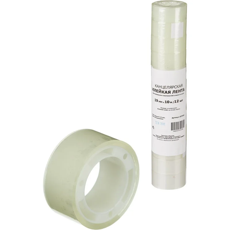 Канцелярская клейкая лента Officespace 12мм х 20м, прозрачная