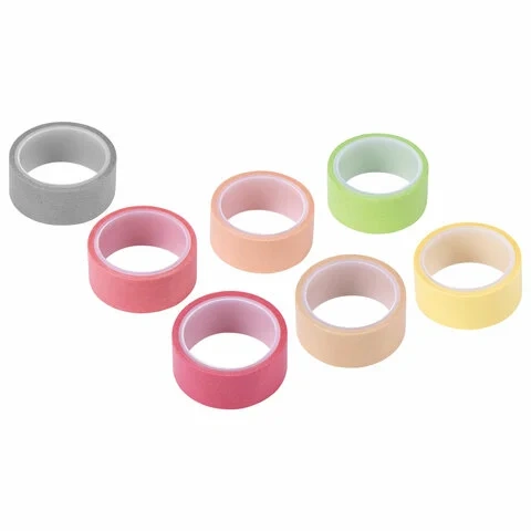 Клейкие WASHI-ленты для декора 'ПАСТЕЛЬ', 7 теплых цветов, 15 мм х 3 м, рисовая бумага, ОСТРОВ СОКРО