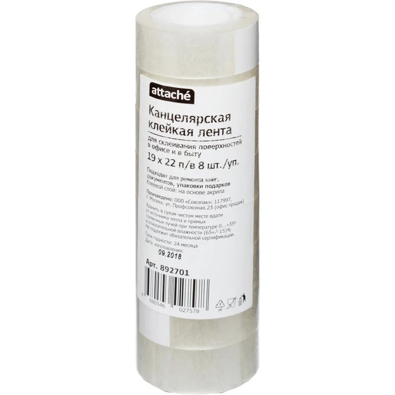 Клейкая лента канцелярская Attache 19х22 п/в 8шт/уп