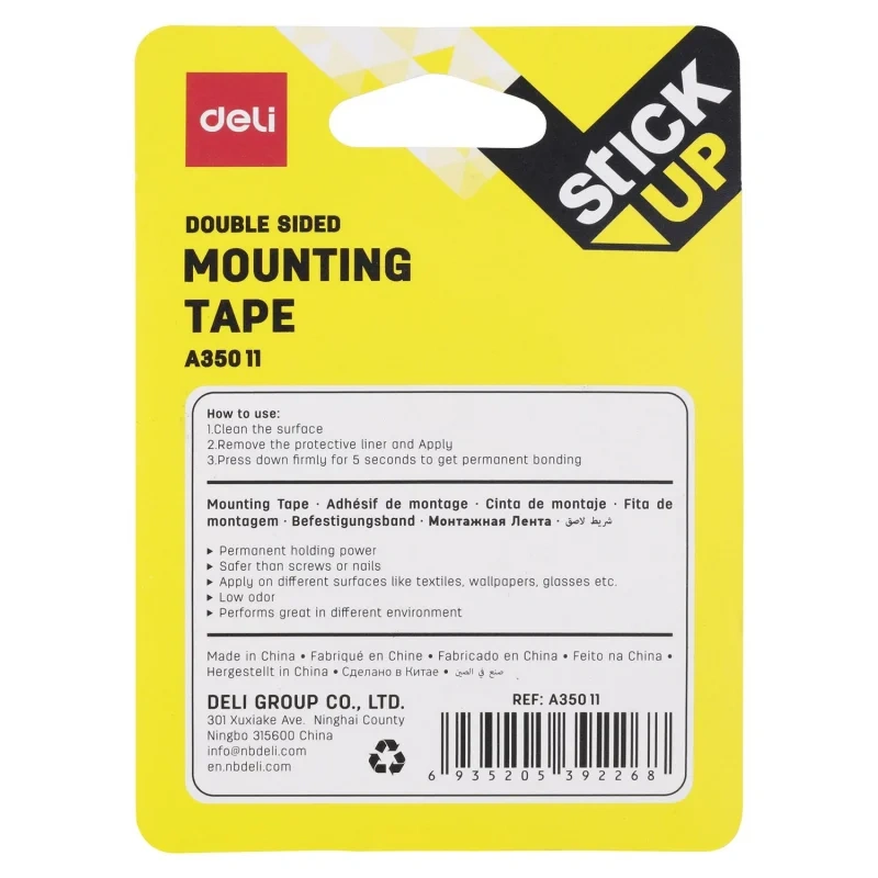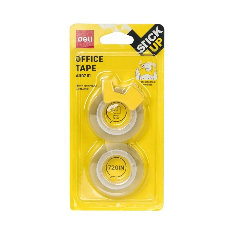 Канцелярская клейкая лента Deli 1.5м х 25.4м, белая, двухсторонняя