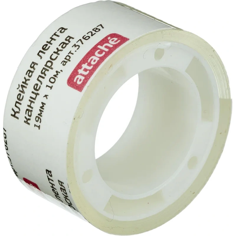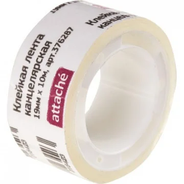 Клейкая лента канцелярская Attache 19мм х 10м, прозрачная, на пластиковой втулке