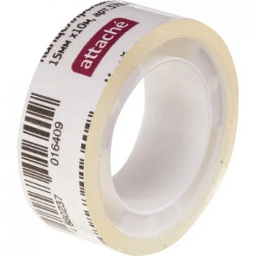 Клейкая лента канцелярская Attache 15мм х 10м, прозрачная, на пластиковой втулке