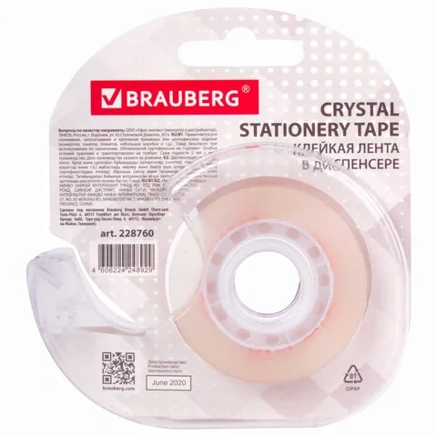 Клейкая лента канцелярская 19 мм х 33 м КРИСТАЛЬНАЯ, в диспенсере, BRAUBERG, 228760
