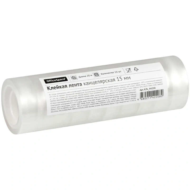 Клейкая лента 15мм*20м, OfficeSpace, прозрачная