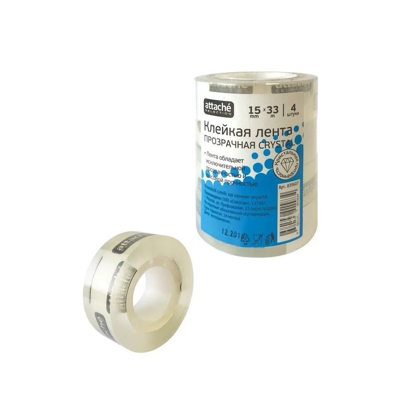 Клейкая лента канцелярская Attache Selection 15х33 кристальная 4 шт./уп.