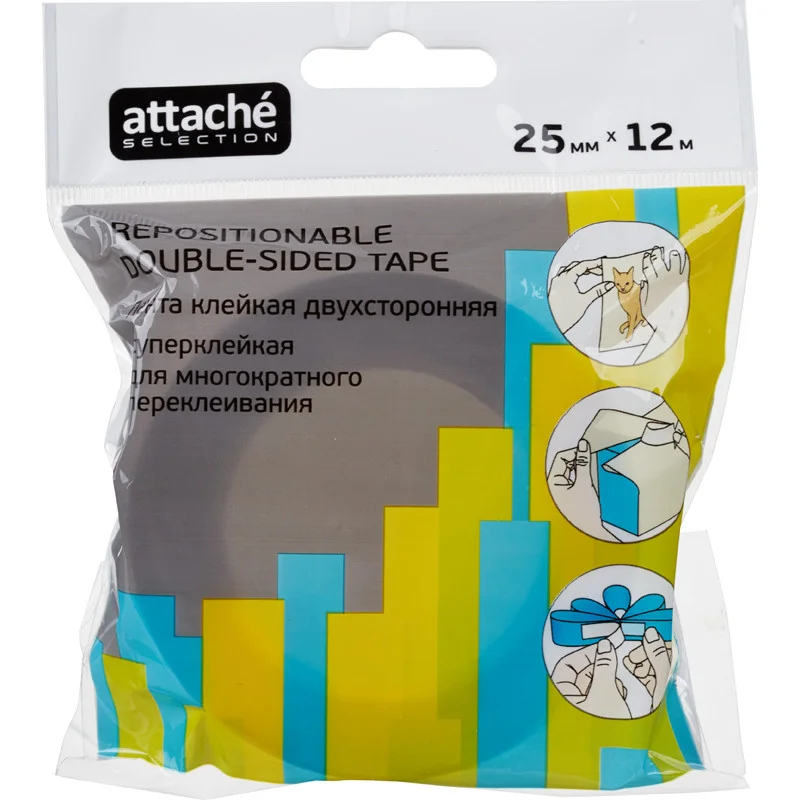 Канцелярская клейкая лента Attache 25мм х 12м, двусторонняя