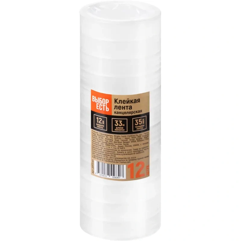 Клейкая лента канцелярская Выбор есть 12мм х 33м 35 мкм 12 шт./уп