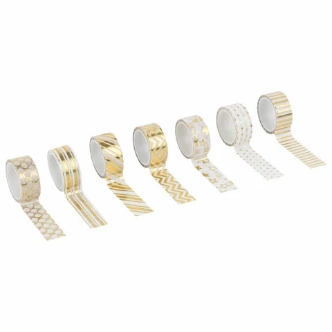 Клейкие WASHI-ленты для декора с фольгой ЗОЛОТИСТЫЕ, 15 мм х 3 м, 7 шт., рисовая бумага, ОСТРОВ СОКР