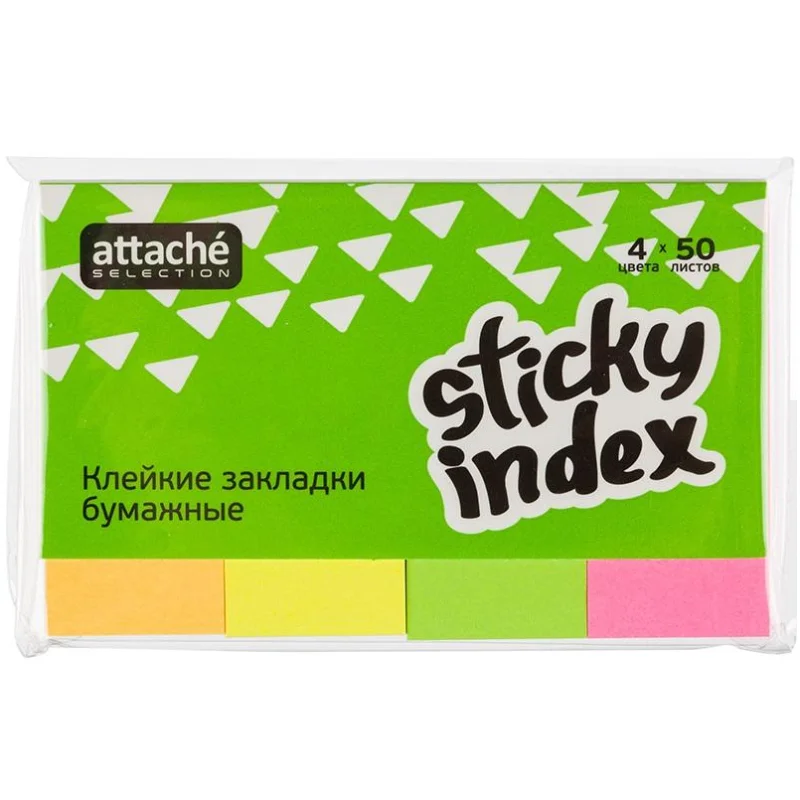 Бумажные клейкие закладки Attache Selection. Закладки клейкие, ширина которых составляет 20 мм, могут служить закладками в документах, использоваться для записи краткой информации, для выделения текста. Яркие неоновые цвета закладок акцентируют Ваше внимание на нужном моменте в документе или тексте.