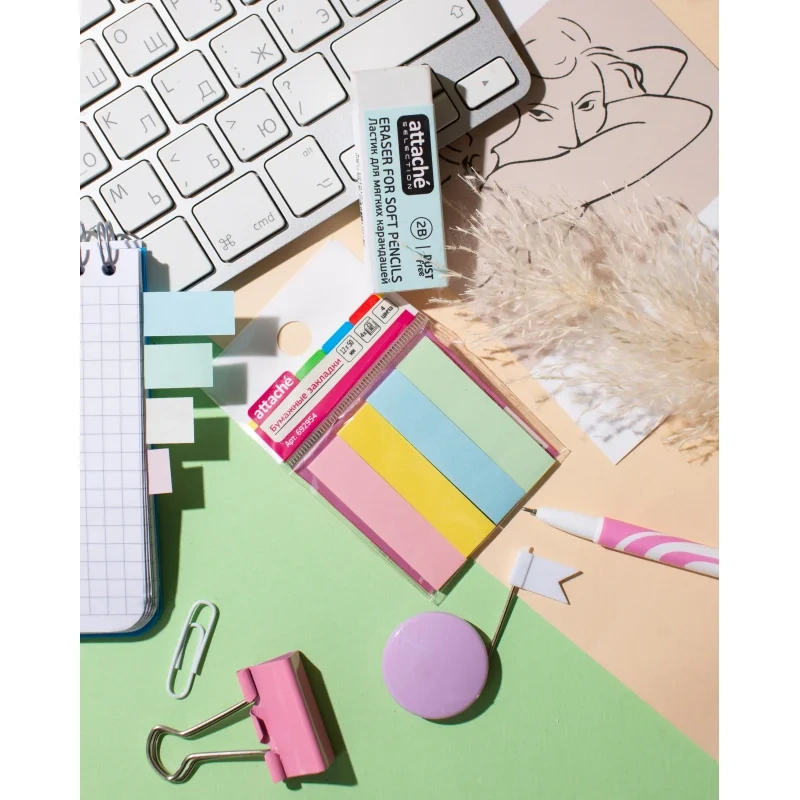 Бумажные клейкие закладки Attache. Закладки клейкие, ширина которых составляет 12 мм, могут служить закладками в документах, использоваться для записи краткой информации, для выделения текста. Яркие неоновые цвета закладок акцентируют Ваше внимание на нужном моменте в документе или тексте.