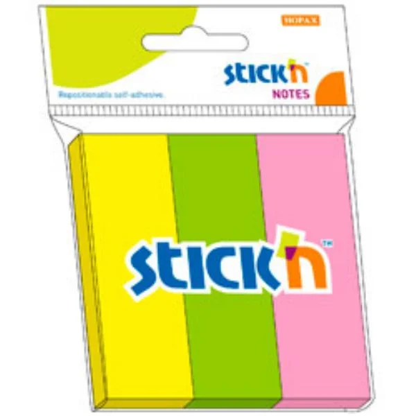 Клейкие закладки бумажные Stick'n 76х25мм, 3цвета по 50 листов, неоновые