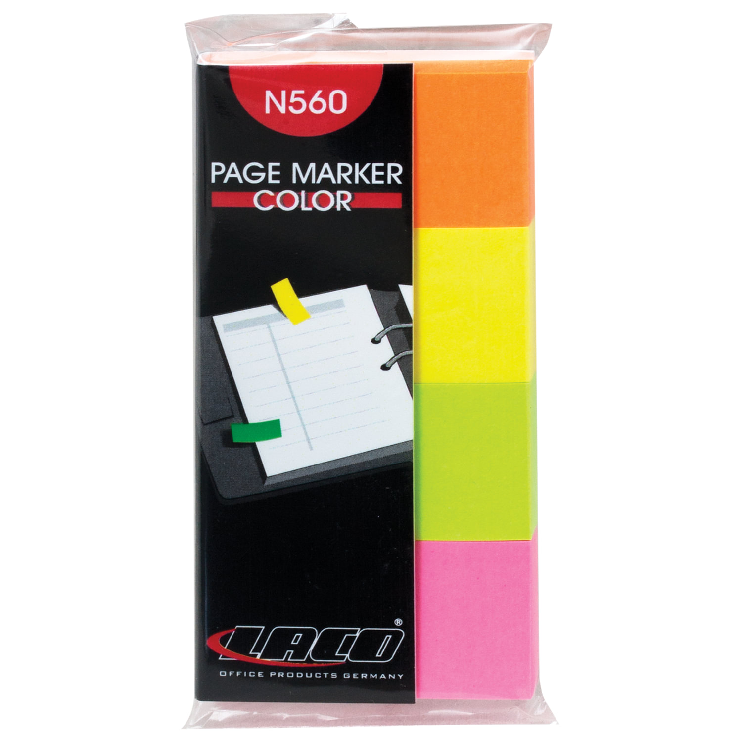 Клейкие закладки бумажные Laco 20х40мм, 4 цвета по 50 листов, неон