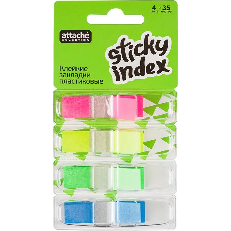 Пластиковые клейкие закладки Attache Selection. Закладки клейкие, ширина которых составляет 12 мм, могут служить закладками в документах, использоваться для записи краткой информации, для выделения текста. Яркие неоновые цвета закладок акцентируют Ваше внимание на нужном моменте в документе или тексте.