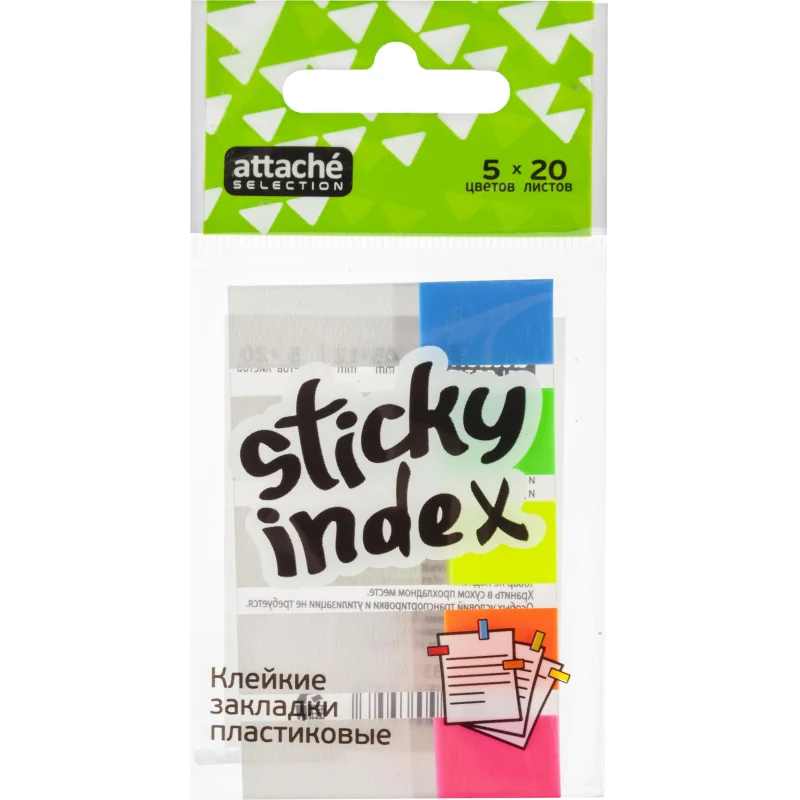 Клейкие закладки пластиковые Attache 12х45мм, 5цвета по 20 листов