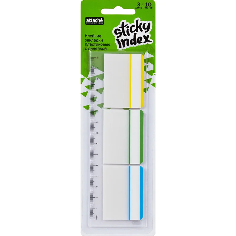 Клейкие закладки пластиковые Attache 37х50мм, 3цвета по10 листов