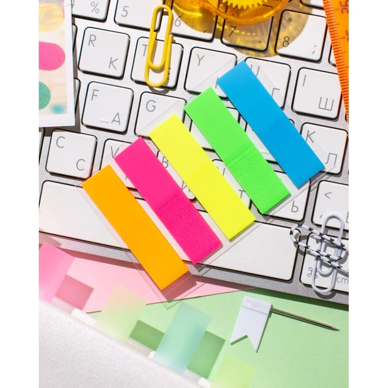 На закладках можно писать ручкой, чернографитовым карандашом, маркером, фломастером. В упаковке 5 ярких неоновых цвета по 20 листов каждого цвета.