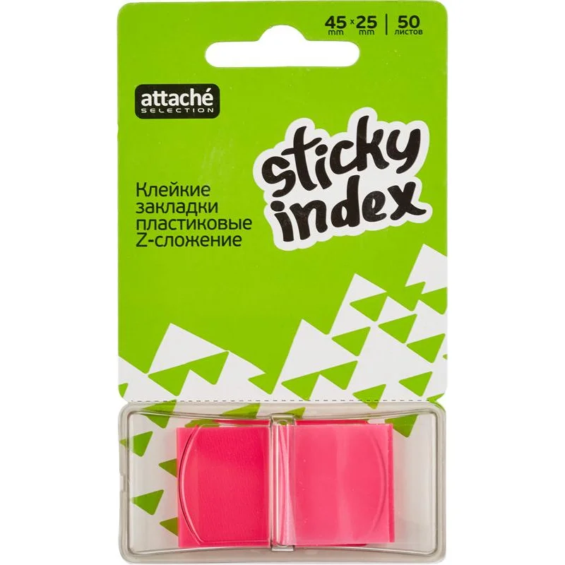 Клейкие закладки пластиковые Attache пурпурные, 25х45мм, 50 листов